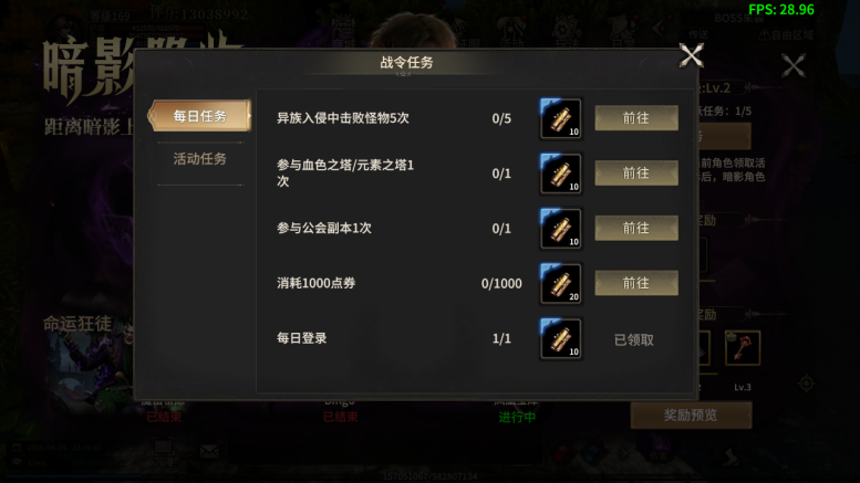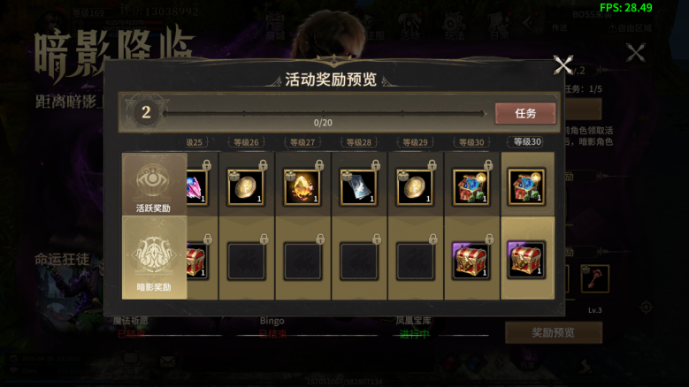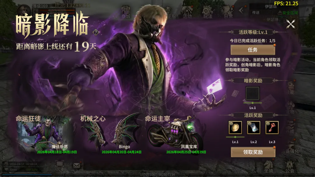 活动期间,每日完成相关游戏任务,即可提升暗影战令等级。每升一级对应奖励自动解锁,轻松获取大量实用道具奖励。战令等级越高,可领取的奖励越丰厚,内含武器时装、翅膀、坐骑返场宝箱奖励。暗影期开放暗影创角后,新创建的暗影职业角色,可以领取所有对应暗影奖励! 注:暗影奖励包含周年庆主题外观、大量角色经验、对应赛季黄金装备以及海量启动资源! 暗影的脚步已近,庆典的灯火正亮。即刻登录游戏,迎接暗影与周年交织的盛大时刻吧!暗影战令